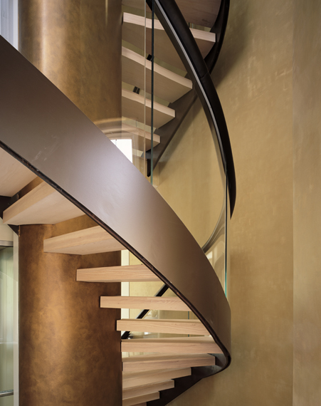 Boyarsky has also created a striking staircase that winds its way up a five-storey